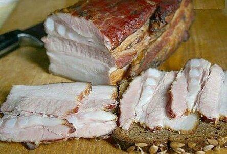 Сало горячего засола-вкуснейший домашний деликатес. Ингредиенты: -Вода — 1 л -Свиное сало с прослойками мяса — 1 кг -Луковая шелуха — 3 горсти -Лавровый лист — 2 шт.